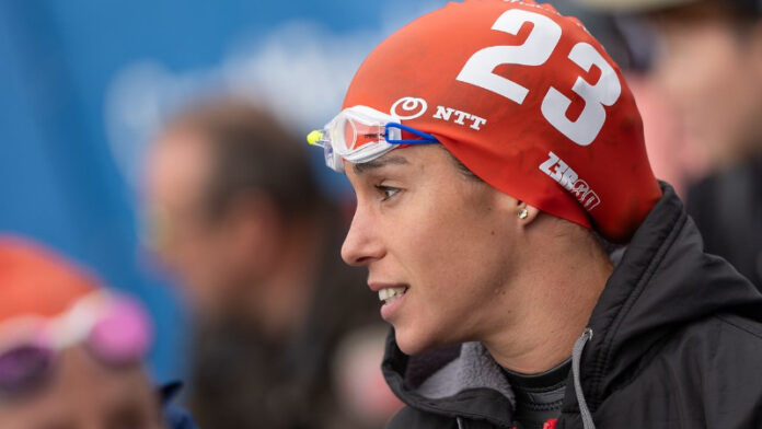 La pacense salió del agua en el grupo intermedio, pero en la zona de boxes sufrió un imprevisto cuando la cremallera del neopreno se atascó y tuvo que romper el traje para poder continuar. La incidencia la relegó al último puesto al abandonar la primera transición.